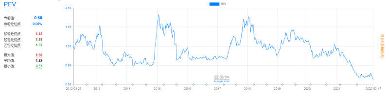 过去十年PEV估值中位数来算,对应约100元,现价而言有翻倍潜力。