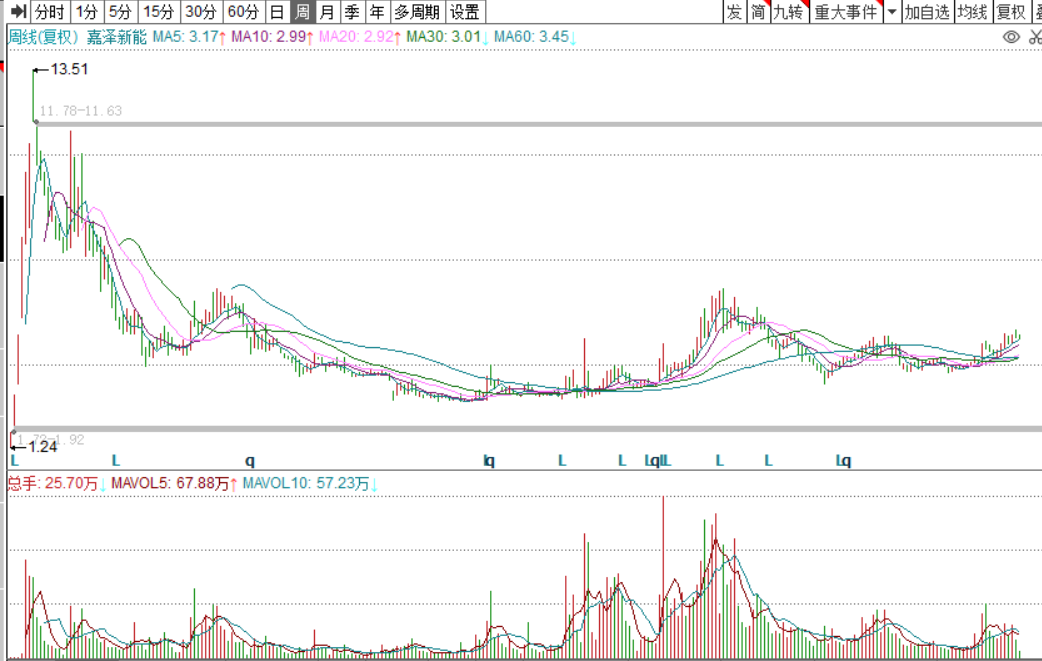 股价也算强势,并没有跟随大多数新能源股一跌再跌。