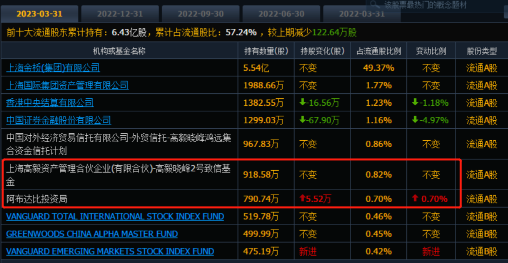 稍早一个季度的阿布达比投资局,也新进635万股,并加仓到790万股,占比0.7%。