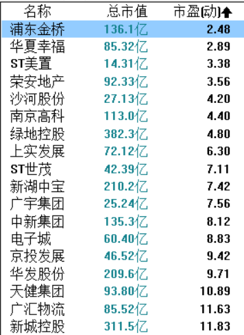 动态市盈率方面,浦东金桥也位列最低,低估程度厉害。