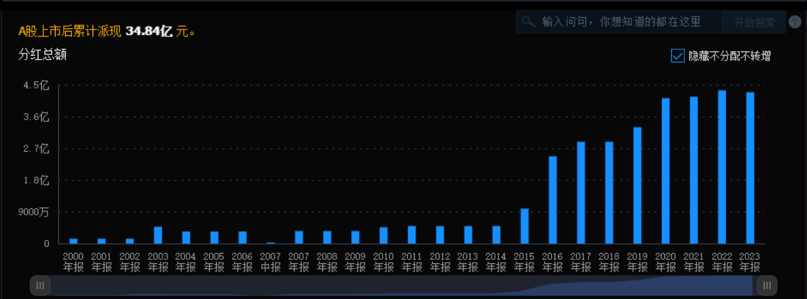 但具有长期稳定的分红历史,上市后从未间断分红。