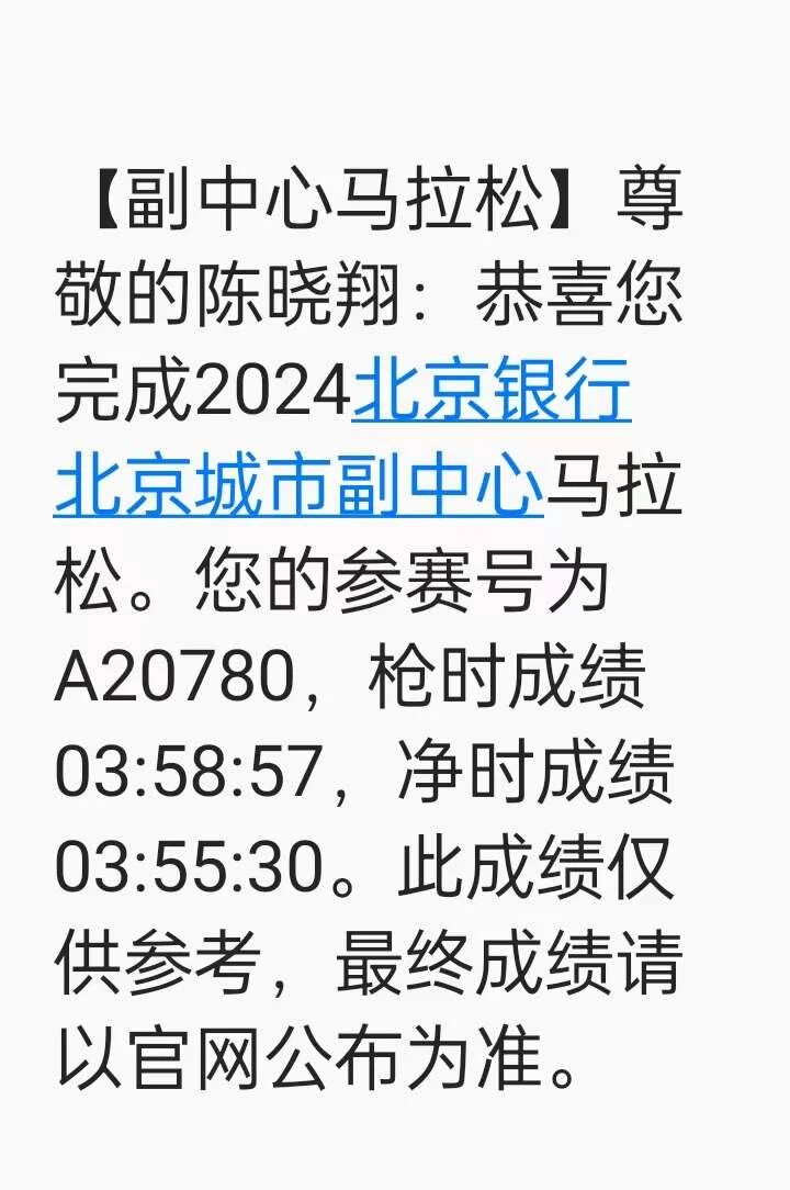 比如今天,上午跑了北京副中心马拉松,用时355;