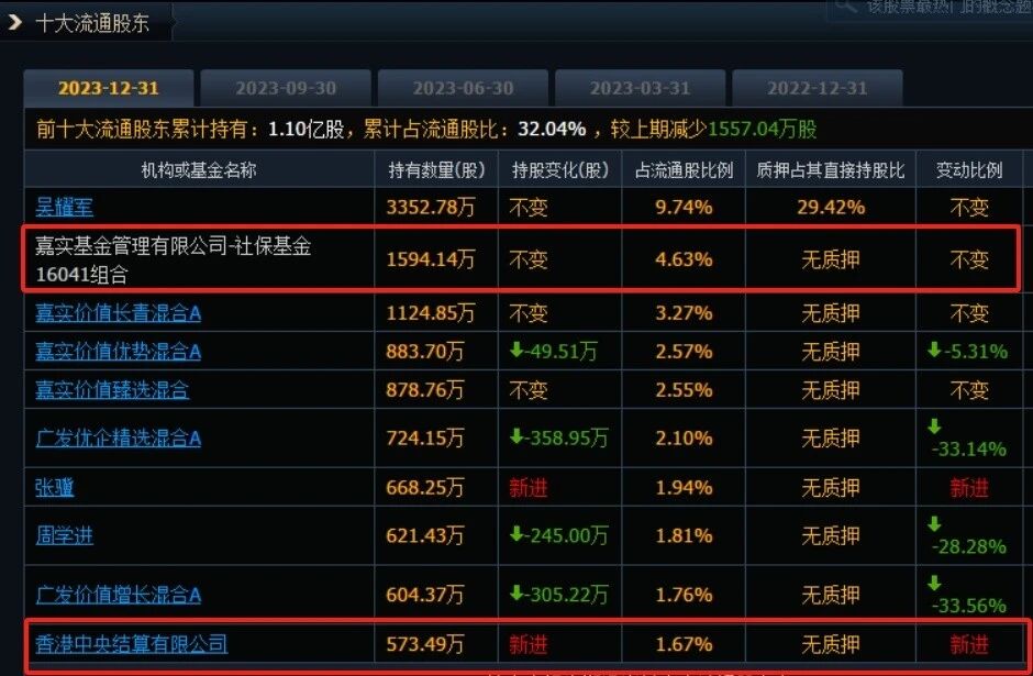 最新数据显示,位列第二大流通股东,占比4.63%。