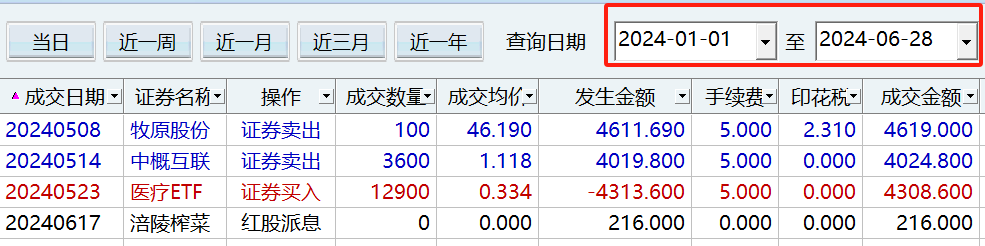 三笔交易,一笔红股派息。5月上半月两笔卖出,5月8日46.19元卖出牧原股份;5月14日1.118卖出中概互联。基本都是5%的仓位。下半月一笔买入,5月23日0.334买入医疗ETF。