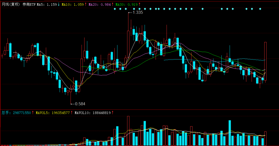 那些经验丰富的老股民,相信有相当多的人,已经潜伏了券商。即便你现在知道上车买券商,但不好意思,基本上他们都是涨停,买不进去,哈哈。