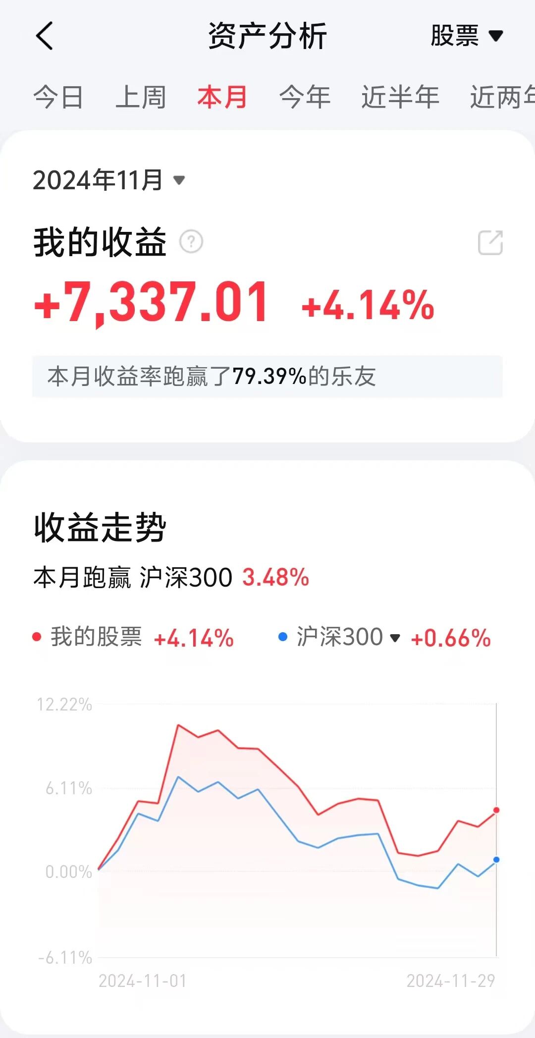 定投账户1,涨4.14%。同期沪深300指数涨0.66%,账户跑赢大盘3.48%,表现最好。