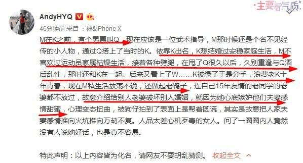 黄毅清表示孔令辉要家庭,但是马苏劈腿不断,接着又靠齐虎上位,同时睡魏大勋,私生活放纵,无耻至今,甚至故意把李小璐介绍给皮几万三人大玩游戏。当然,黄毅清称这是化名,那么大胆的他也会怂了?网友认为黄毅清的炒作也不能排除嫌疑。