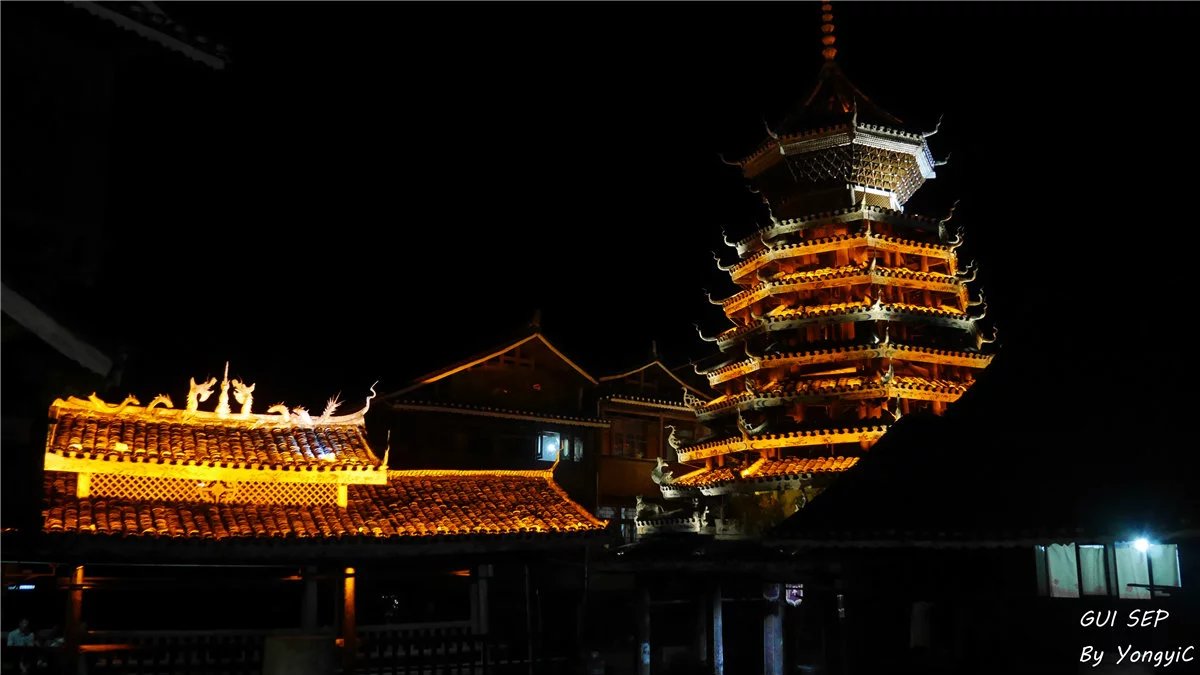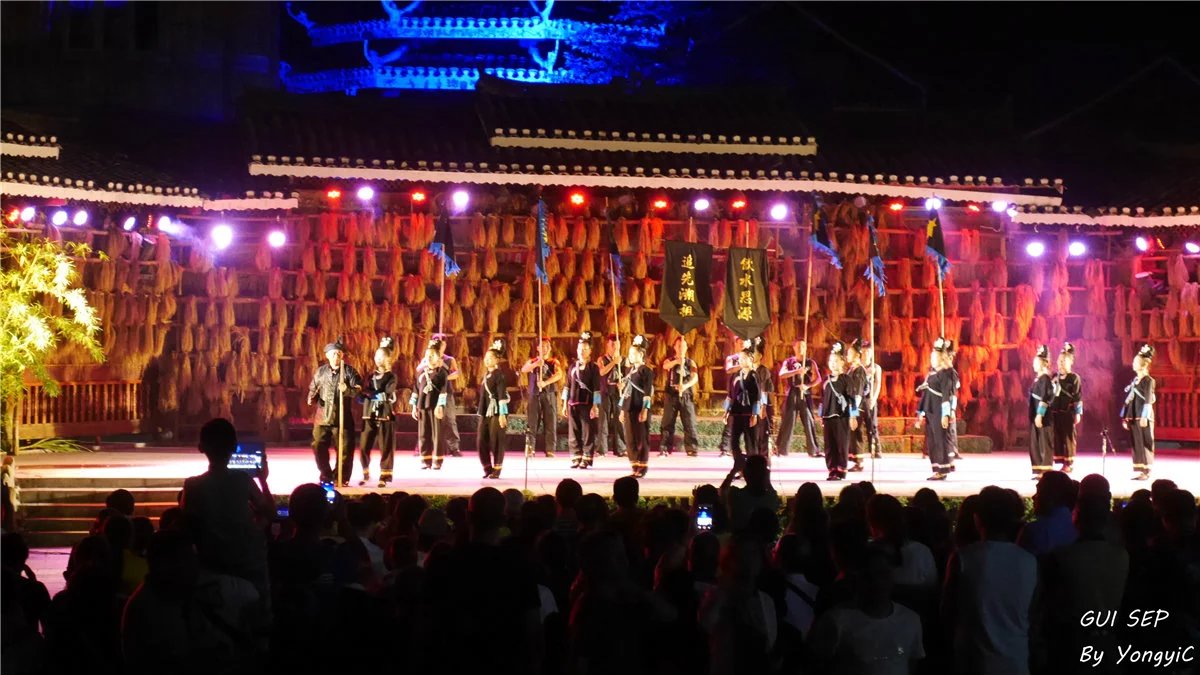太阳下山前气温才慢慢降下来,每天晚上8点肇兴侗寨都有表演可以看,挺不错的,还有LED灯移动字幕解说他们唱的是什么故事。