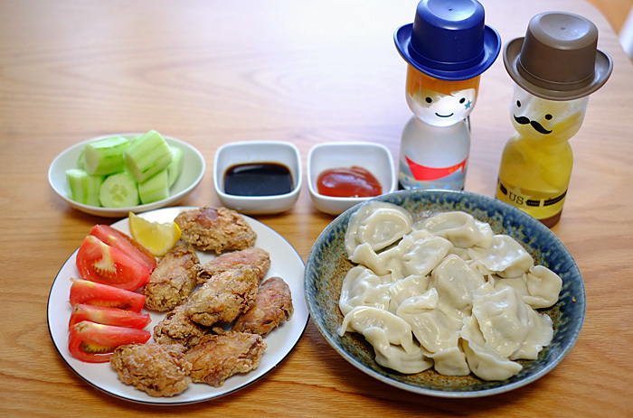 炸鸡腌制:酒+蛋清+蒜末+姜+五香粉+盐,裹至腌制2小时。炸前在玉米粉里豪放的滚一圈,小火炸至金黄即可。配茶是因为去油腻。堕落中不忘养生。