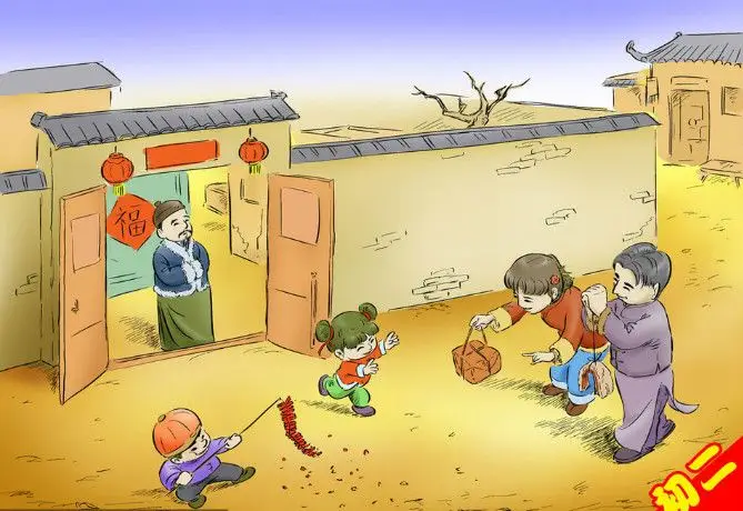 年初二,出嫁的女儿回娘家,要夫婿同行,所以俗称“迎婿日”。这一天,回娘家的女儿必须携带一些礼品和红包,分给娘家的小孩,并且在娘家吃午饭,但必须在晚饭前赶回婆家。在过去,一家人也会选择这一天拍张全家福。