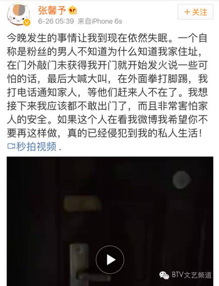 近日,女星张馨予发微博称,自己遭到了自称是粉丝的男人骚扰,并且配上了视频!