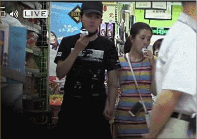 然后又手牵手在超市里吃冰激凌,跟普通小情侣一样,好甜~