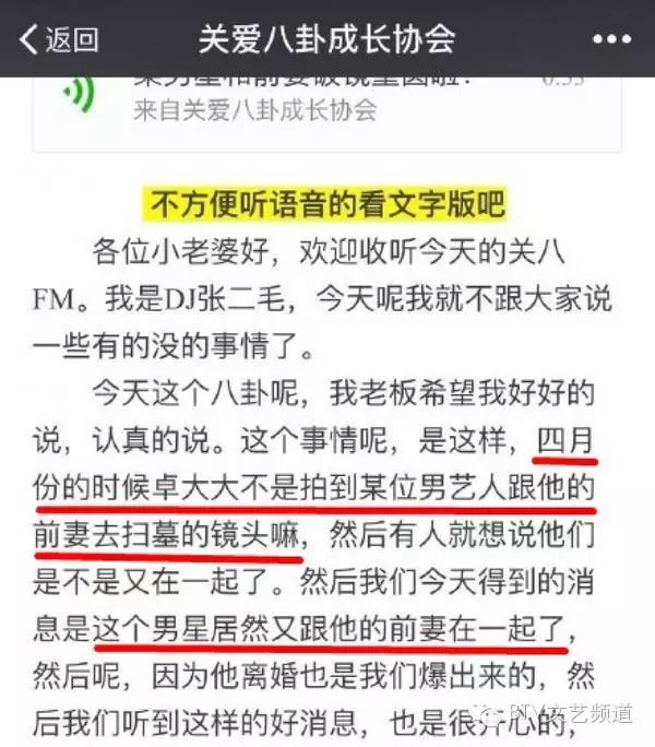 原来是因为昨天某微信号曝了这么一条新闻——某离婚男星已经跟前妻复合。小编已经划了重点,就是被卓伟拍到清明一块去扫墓的那对。