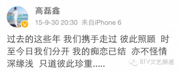 离婚后的2016年1月,高磊鑫还发过配字“雪下的那么认真”的微博,网友都说俩人还有情,缘分未尽。