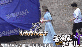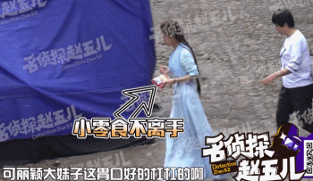 不过按理说,这种艳阳高照的季节,还是在户外,一般都是没啥胃口的,最多也就是吃两根冰棍而已,不过赵丽颖同学这手里的零食好像就一直没放下过。