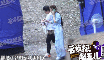 据说当天的横店有38度,看把我们颖宝热的,又是打遮阳伞又是撸袖子的。