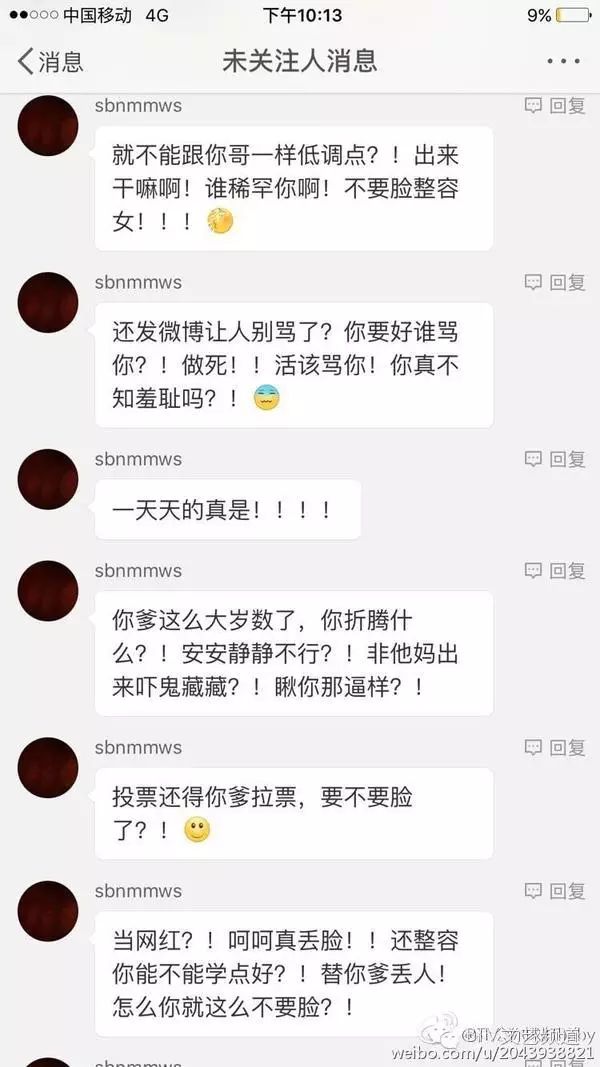 因为种种原因,这姑娘也受到了很多质疑。但是不喜欢归不喜欢,私信人家骂脏话这种行为就是素质有问题了。