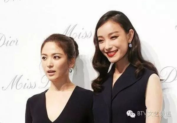 但怎奈比她矮了将近十厘米的宋慧乔脸更小,所以合影的时候就变成了这样↓