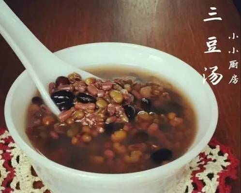 ps:对于消化功能特别弱的人,可在三豆中加入适量大米,熬成清粥食用,也有清热健脾的效果。