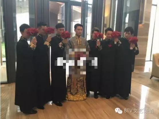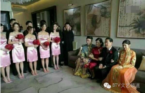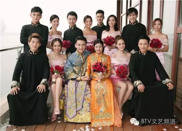接下来就是咱们盼了好久的伴娘伴郎团,伴娘粉红连衣裙,伴郎黑色长衫。