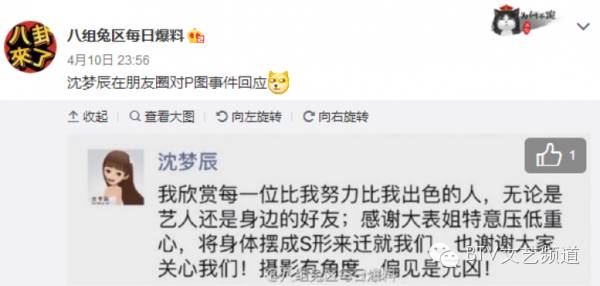 但是据网上截取的沈梦辰朋友圈是这样说的,感谢大表姐特意压低重心,摄影有角度,偏见是元凶!