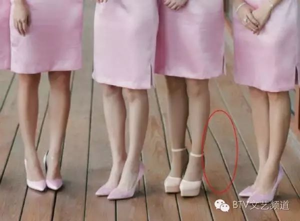 满满的九张全是美照,但是有细心的网友发现,最美伴娘团成员里只有阿娇的腿被P细了↓