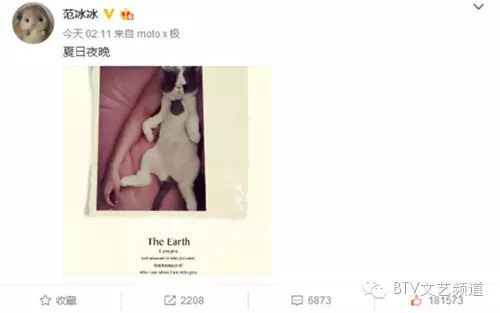 近日,广大单身狗表示:大半夜的,无意间又被范冰冰的新微博虐了个半死!简短的四个字,附加一张裸臂抱猫的图。 @冰冰姐,咱们坐下来好好聊聊,你是要晒猫还是晒大黑牛的手臂?