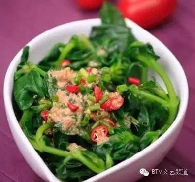 食材:穿心莲、麻酱、香葱、小红椒、蒜、盐