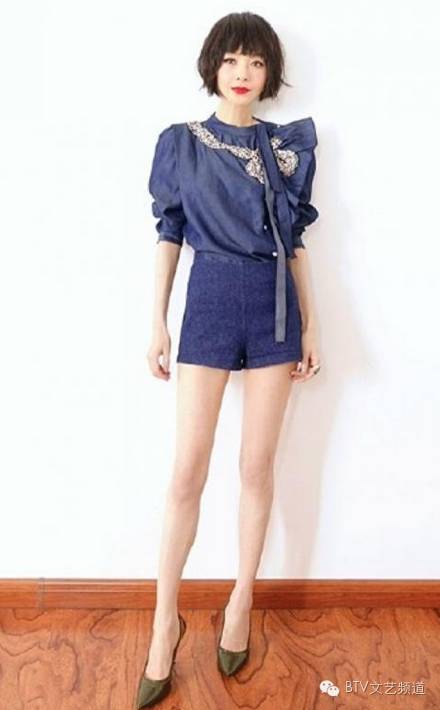 而且为了掩盖自己头大身子小的缺点,鲁豫的上衣也选择了有膨胀感的娃娃衫,再露出细长的腿,堪称完美!