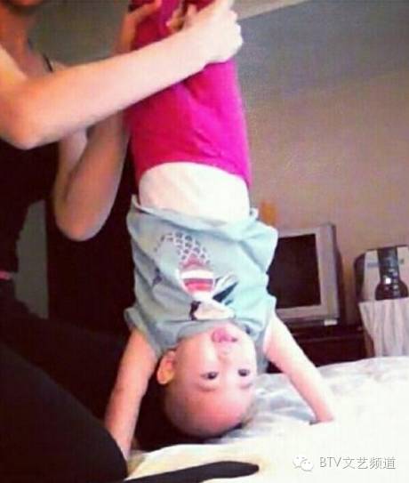 不仅如此,才这么大点,就已经开始学习倒立了。