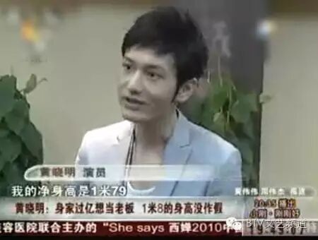 早年,黄晓明曾在某节目上自曝自己裸高为179cm,穿上鞋子后才是180cm。哦,这么说来,百度百科是虚报了?
