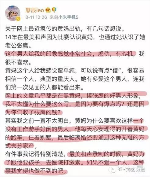 歌手廖辰更是发微博力挺黄妈阐述内情: