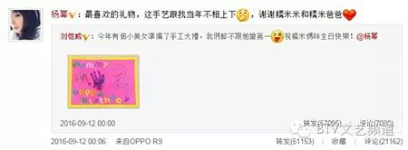 刘恺威也在微博中写道:“今年有个小美女准备了手工大礼,我们都不跟她抢第一,祝糯米妈咪生日快乐!@杨幂。”随后杨幂也转发微博表示感谢:“最喜欢的礼物,这手艺跟我当年不相上下,谢谢糯米米和糯米爸爸!”一家人十分甜蜜。