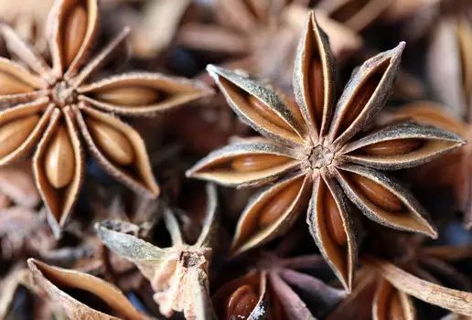 八角是制作冷菜及炖、焖菜肴中不可少的调味品,其作用为其他香料所不及,也是加工五香粉的主要原料,果实与种子可作调料。八角具有温阳散寒,理气止痛之功效,用于治疗寒呕逆,肾虚腰痛,干、湿脚气等症状。