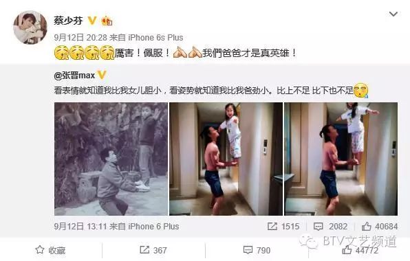 网友见状纷纷围观大赞父女俩功夫了得,而蔡少芬也莫名躺枪,被网友传唤:“有本事把老婆举起来。”、“晋哥,一看你就偏心,我娘娘也要举高高!”