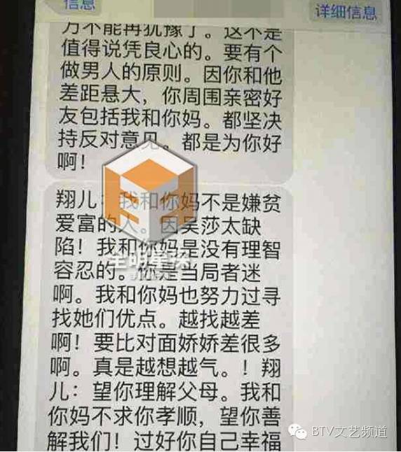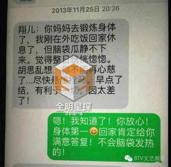 昨天下午,有媒体对外曝光了一组疑似2013年11月,刘翔父亲苦劝刘翔与吴莎分手的短信截图:“你不能再心慈了,尽快悬崖栓(勒)马。早点了结有利于一切。因太差了!”刘翔则回复:“恩!我知道了!你放心!身体第一,回家肯定给你满意答复!不会脑袋发热的!”