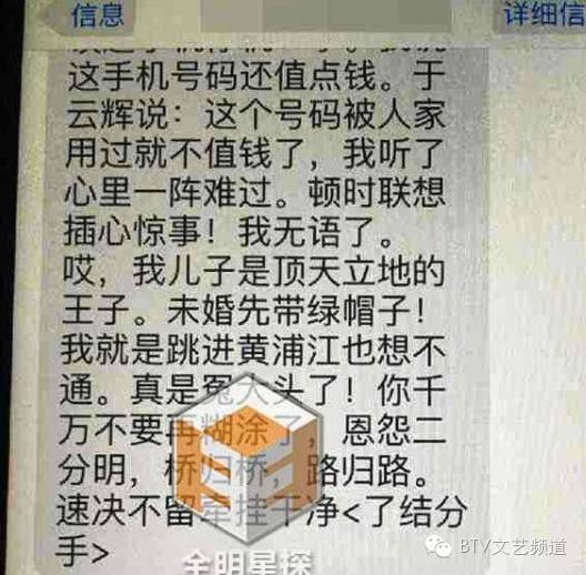 刘翔父亲还说:“我儿子是顶天立地的王子。未婚先带绿帽子,我就是跳进黄浦江也想不通。真是冤大头了!你千万不要再糊涂了,恩怨二分明,桥归桥,路归路,速决不留牵挂干净”。