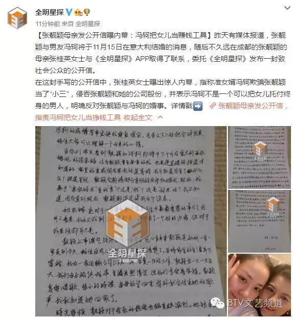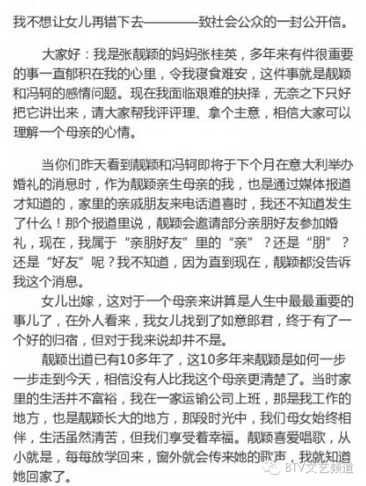 然而今天,张靓颖妈妈就透过媒体曝出一封公开信,正面开撕“准女婿”冯柯,指责他一直在欺骗张靓颖……