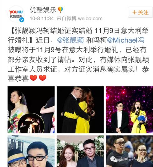 昨天,张靓颖被曝出将与冯轲在下个月举行婚礼,而冯轲也在微博发文确认了婚讯。