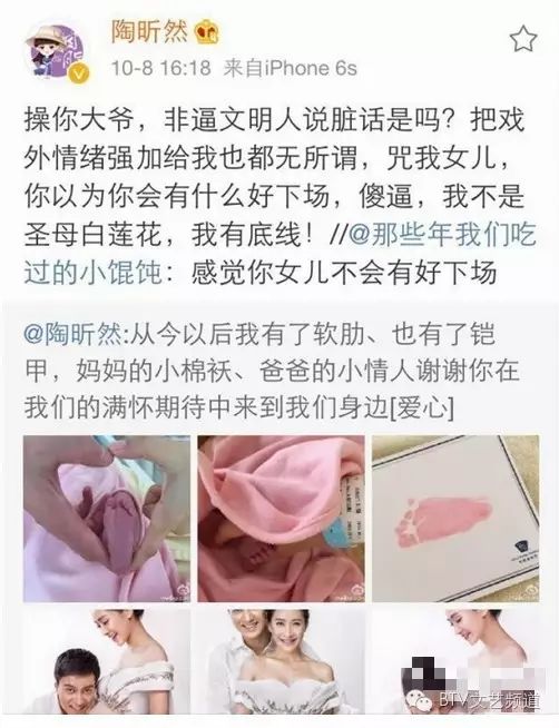 原来才刚刚生下女儿的陶昕然,就被网友攻击女儿“不会有好下场”,气的她直接爆粗口痛骂!