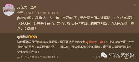 不过张靓颖随后在微博否认“小三”一事:“这件事就只是我的家庭沟通问题,请不要把无辜的女孩@元気大二蛮D
