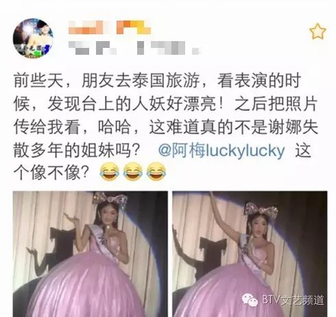 前阵子,某热门博主在微博晒出一组照片,并发文称:“前些天,朋友去泰国旅游,看表演的时候,发现台上的人妖好漂亮!之后把照片传给我看,哈哈,这难道真的不是谢娜失散多年的姐妹吗?”
