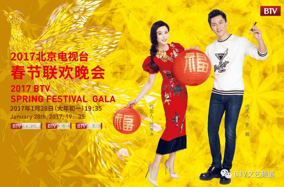 2017年北京台春晚将于大年初一(1月28日)19:35在北京卫视和北京电视台文艺频道、北京电视台青年频道同步播出。