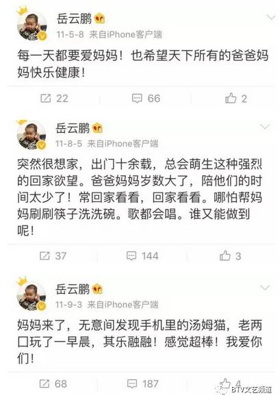 几年前,小岳岳还没有今时今日这么火爆时,他就经常在微博上抒发对妈妈的爱。