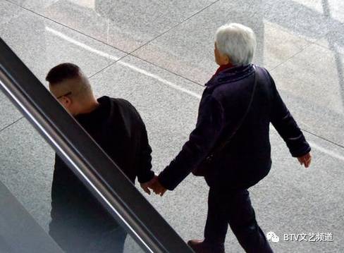 而镜头捕捉的这一幕戳中了许多人的心窝——妈妈满头的白发,儿子牵着妈妈,母子俩的背影,令人动容。