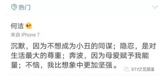 濛小主还是要为何洁的坚强点赞,这个女人字里行间散发着种种坚强和坚韧,这是一个母亲的担当跟勇敢!
