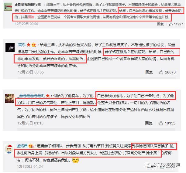 不但经纪人和圈内好友转发支持,舆论也立刻倒向何洁,称何洁既要照顾家照顾孩子,又要努力工作赚钱,非常不容易,让人心疼。并爆料赫子铭N宗罪: