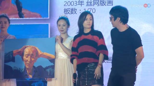 王菲当晚不仅心情好,而且玩得特别嗨。到了内场的拍卖环节,郑钧夫妇上台宣传自己的拍卖品。