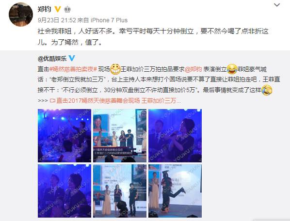 台下的王菲就喊话,“老郑,你瑜伽倒立我就出三万”,可以说非常调皮了~~