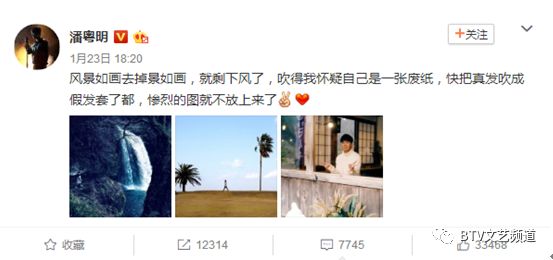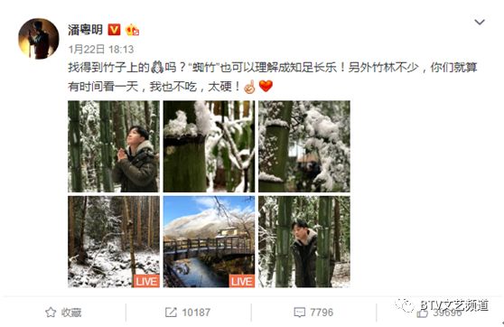 有着同样心态的还有潘粤明的粉丝!毕竟,潘老师跟彬彬有礼的小青蛙一样,无论是走到哪,不管多忙总会记得在发几张自拍或者当地美景来和大家分享生活中的小确幸。